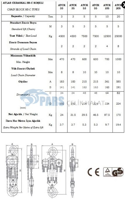 ATCY ve ATCK serisi ceraskallar taşınabilir kaldırma araçlarıdır. El zinciri yardımı ile kolaylı ile kullanılır. Ürün avantajları ise herhangi bir elektrik ya da enerji kaynağına ihtiyaç duyulmadan çekme zinciri ile kullanılmasıdır.KULLANIM YERLERİ