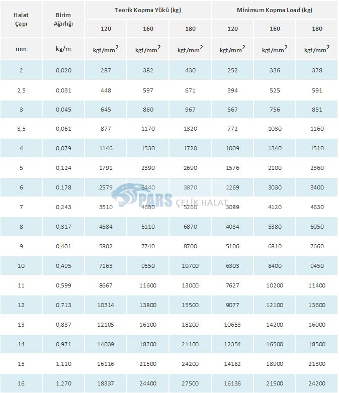 Tek kolda 19 çelik sert telden oluşur.